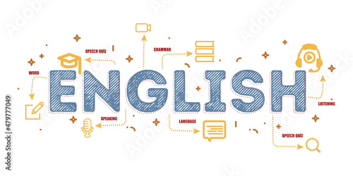 Design Concept Of Word ENGLISH Website Banner.
