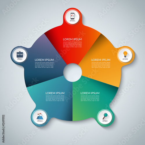Circle shape infographic chart template with 5 options.
