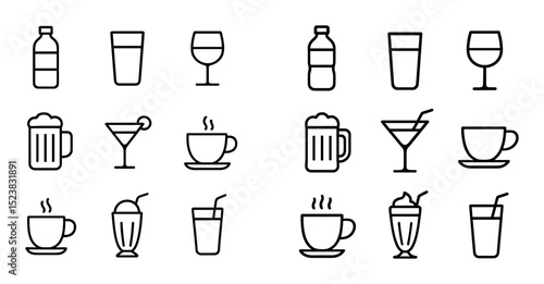 線の編集ができる飲み物に関するアイコンセット(アウトライン化していない)