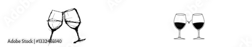 Wine icons - Collection of wine glasses and bottles. Elements for invitation cards, advertising banners and menus.