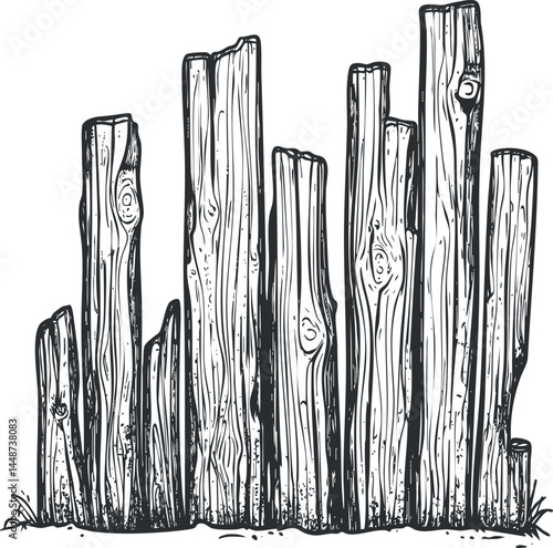 Drawing woodpile vector art sketch illustration overlapping planks near expressive crosshatched contours