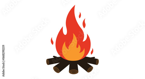 Illustration of Burning Campfire with Logs and Flames for Outdoor Activities or Relaxation