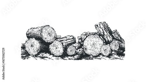 Hand drawn woodpile illustration perfect for cozy winter themes or outdoor design projects