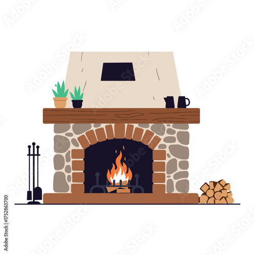 Cozy fireplace illustration for home decoration, warm and inviting atmosphere
