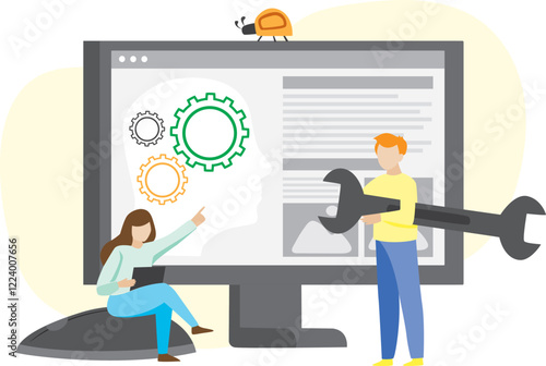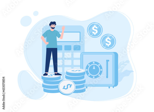 10000 followers, happy blogger celebrating blog goal achievements, flat vector illustration. 10k social media subscribers. Blogging.