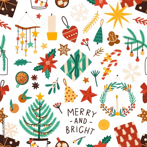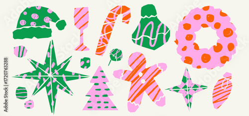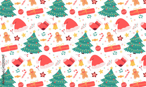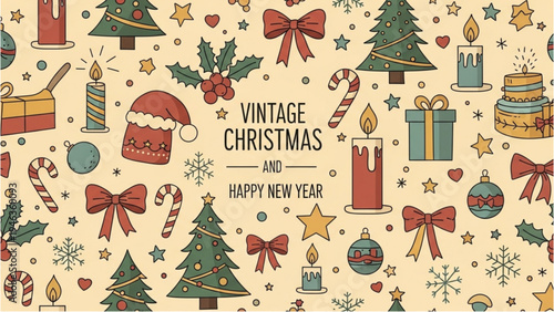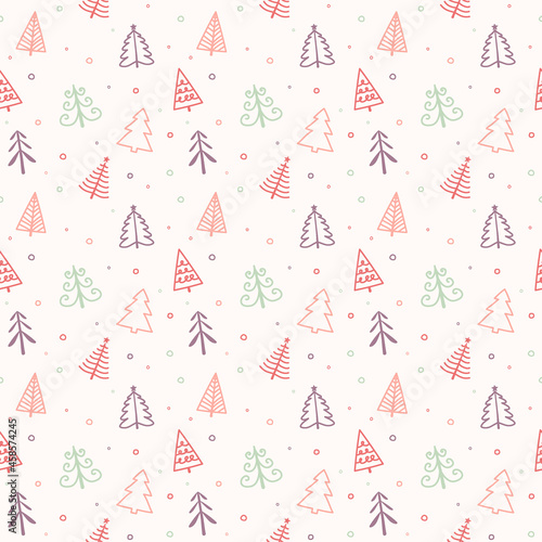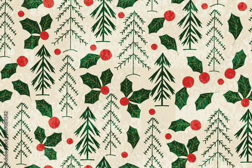 2024 Happy New Year colorful poster or web banner vector illustration design with xmas fir trees and branches in modern minimalist style