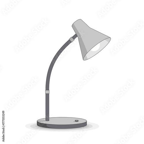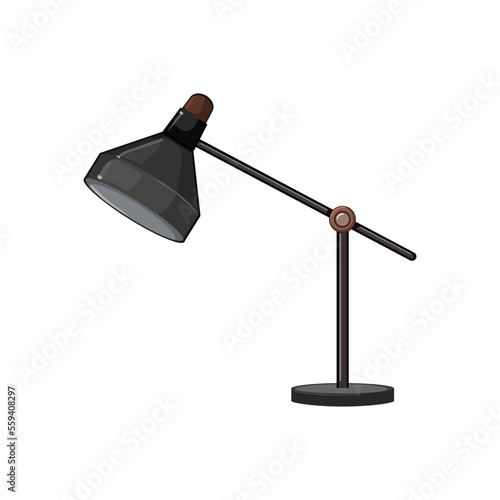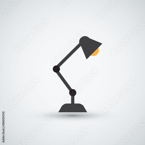 3d desk lamp on wooden table lights up empty wall. Vector illustration. Copy space for text template