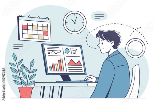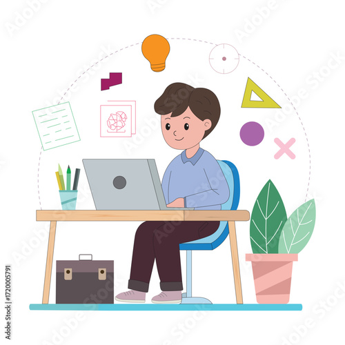 3d modeler, artist creating three dimensional digital design using computer software, vector flat isometric illustration. Male freelancer, making 3d model of object.