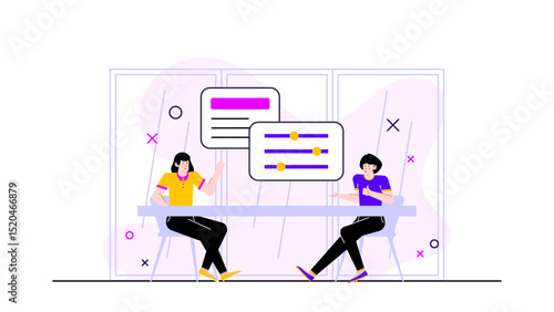 3d printer with characters composition set, vector illustration isolated on white background. Rapid prototyping 3d printing technology, additive manufacturing concept for web banner, website page etc.