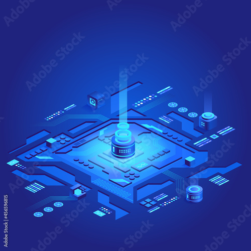 5G network website banner, web page design template, isometric glowing neon vector illustration. High speed wireless connection. 5G internet technology.