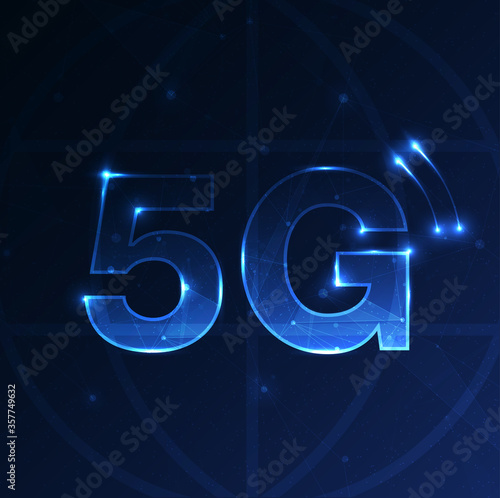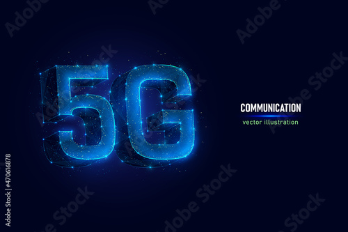 5G WiFi sign low poly wireframe mesh made of points, lines and shapes. Vector polygonal art style design. 5G wireless internet network connection poster banner template with copy space.