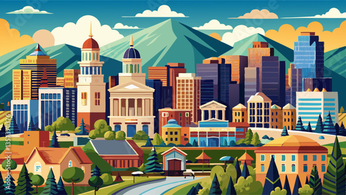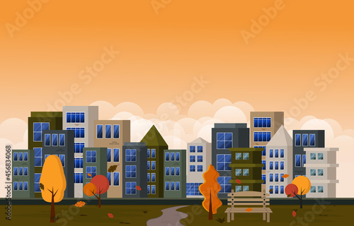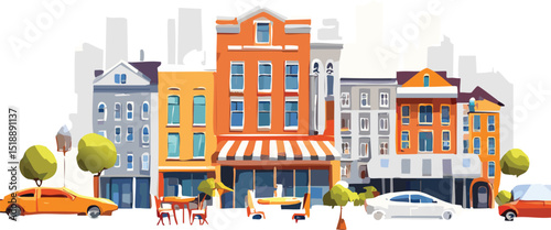 Abandoned city buildings vector cartoon illustration. People left town after earthquake or apocaliptic disaster. City house with broken walls and commercial property. Damage zone after violent riots.