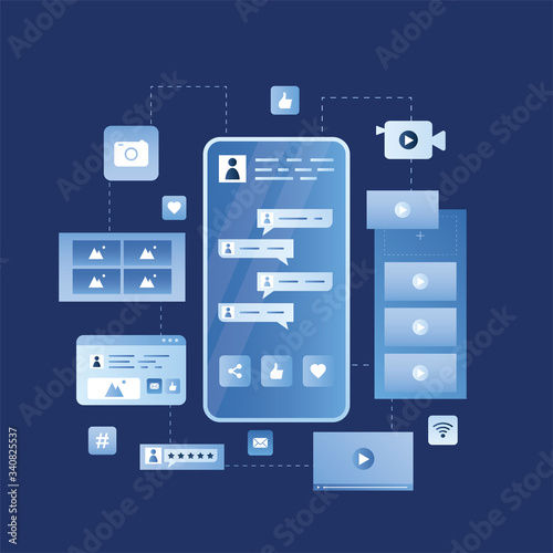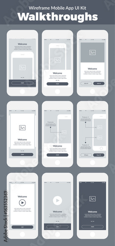 Abandoned city buildings, hungry dog roaming deserted streets. War zone, disaster. Mobile app screens. Vector banner template for website and mobile development. Web site and UI design illustration.