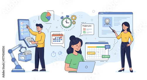 About us, vector flat style design illustration. About us, business company page with organizational profile, contact information etc. concept for web banner, website page etc.