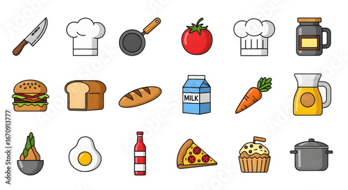 Baking simple mono linear vector icon seamless pattern. Endless background with signs of bread loaf, croissant, mill and other bakery design elements for trendy fabric and packing print