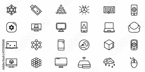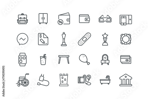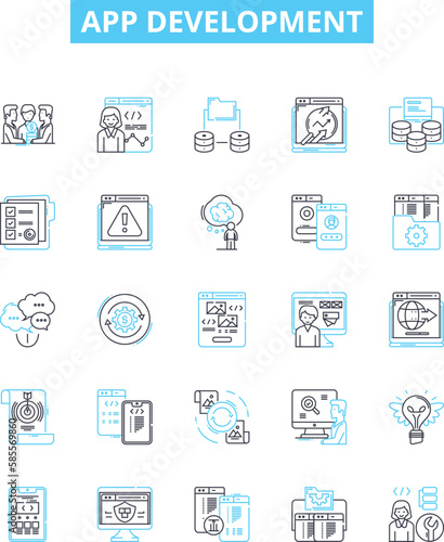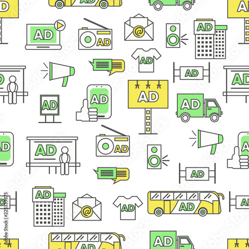 Advertising line icon seamless pattern isolated on white backdrop. Product promotion endless background with minimal marketing signs. Web site wallpaper with outline vector icons for business theme