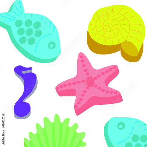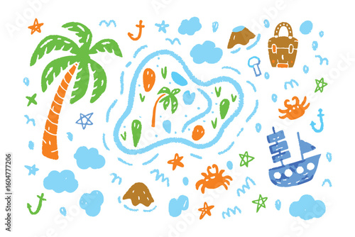 Aerial eye view on different tropical islands of various shape and form in water surface of ocean vector illustration. Exotic beach seaside for vacation, touristic place of destination