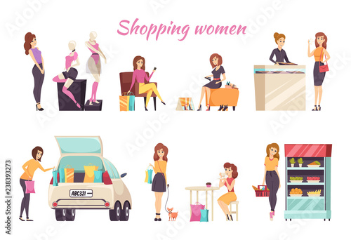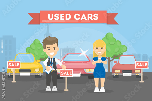 Agents, dealers and clients buying or renting new house, car, motorcycle, cartoon characters set, flat vector illustration. Car rental, home, property sale and purchase, real estate agency service.