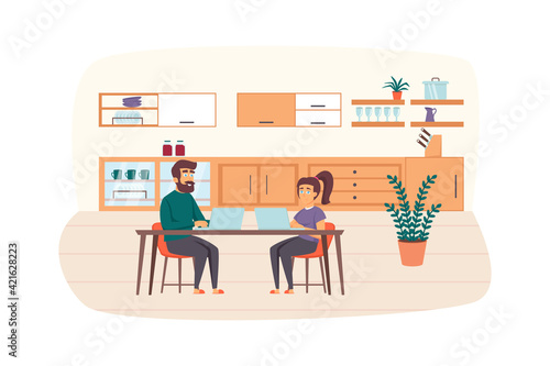 Vector illustration of creative team developing software using agile kanban methodology with cards they move on board from start to finish the process. Agile concept for web banner, website page etc.