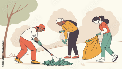 AI Robot helping man farmer in planting process in garden vector illustration. Automated farm life, innovative future technologies and smart farming concept