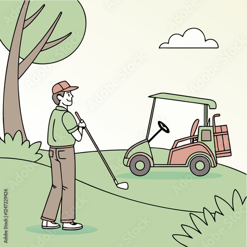 AI robot helper assisting mowing grass with lawn mower appliance under farmer control at backyard vector illustration. Automated farm life, landscaping and futuristic device technology concept
