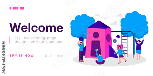 Aid typography vector banner template. Humanitarian aid project composition with social workers volunteers giving donation boxes to needy people. Humanitarian relief, charity and donation.