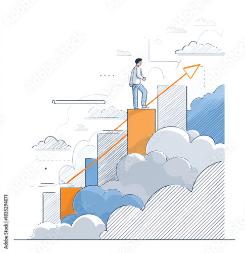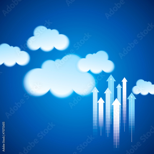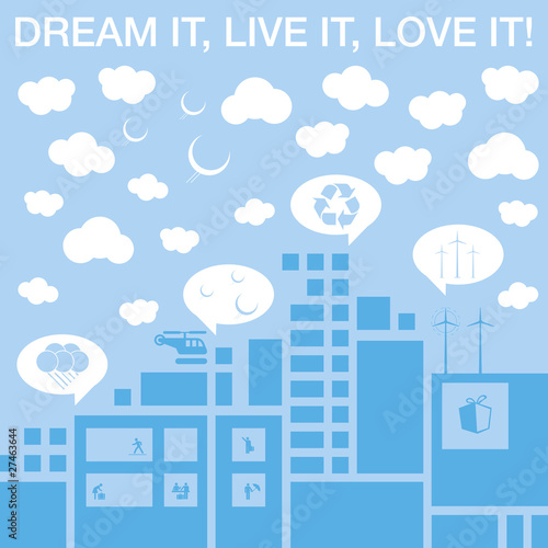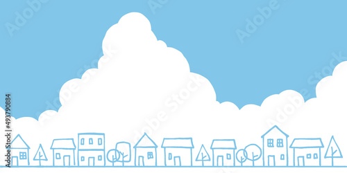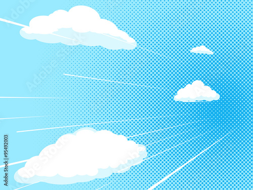 Vector layered paper cut style sky, fluffy clouds, plane flying over city buildings. Worldwide travel, air flight, time to travel concept for web banner, website page etc.
