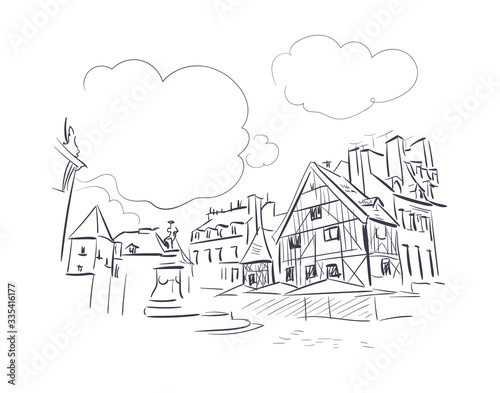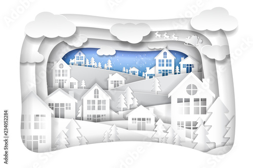 Vector layered paper cut style industrial plant CO2 emissions over the city. Air pollution, ecological problems composition for poster, banner etc.