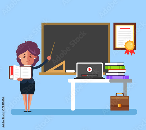 Vector illustration of stewardess with food trolley. Airline food flat style design element.