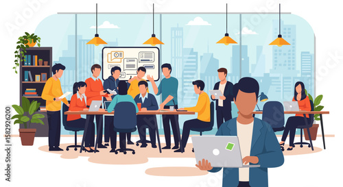 Airport hall interior with people waiting for flight, moving by buggy car, flat vector illustration. Airport buggy services for transit and transfer passengers.