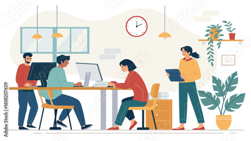 Airport security control and customs concept vector illustration. Security staff check passengres and x-ray luggage. People travel by flight. Airport safety checkpoint.