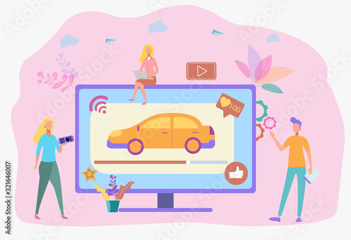 Yellow taxi cab driver and passengers young lady with luggage, woman sitting on plane, vector illustration. Airport taxi service concept for web banner, website page etc.