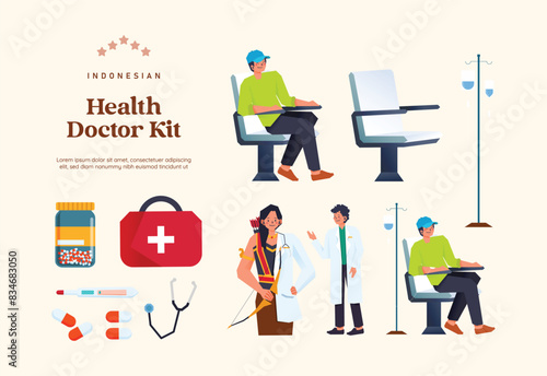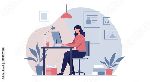 Airport waiting hall. Girl passenger with luggage, passport and ticket waiting for flight, flat vector illustration. Airport lounge. Travel by plane.