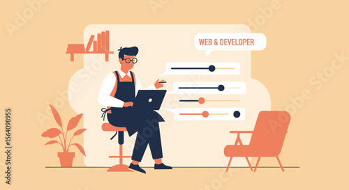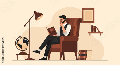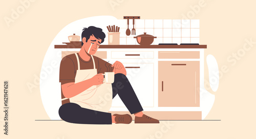 Vector illustration of drunk man drinking alcohol from wine bottle. Alcohol abuse concept design element in flat style.