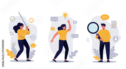 Allergy types set, vector flat isolated illustration. People suffering from pet, food, pollen, seasonal allergy symptoms such as runny nose, itching and watery eyes, rash, sneezing. Allergic reaction.
