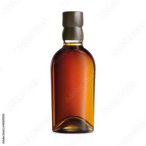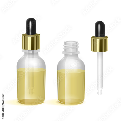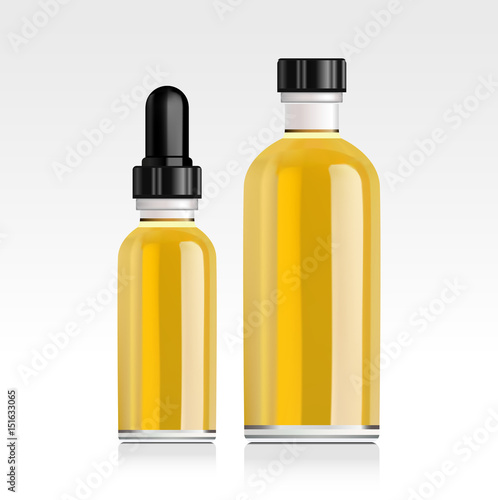 Almond oil bottle realistic vector 3d icon isolated on white background. Organic cosmetic product or natural vegetarian food