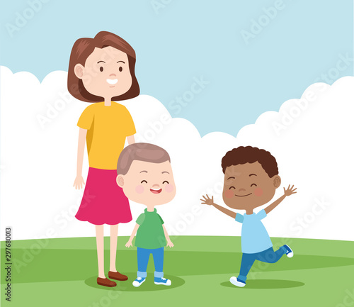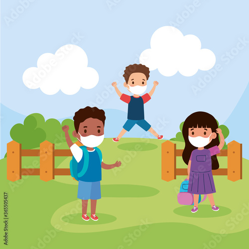 Amateur actor with comedy and drama theater masks acting for kids at home. Vector illustration in flat style. Performing arts hobby concept design element.