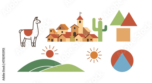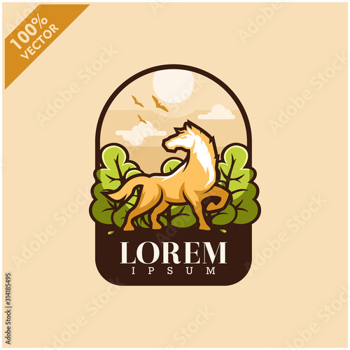 Rider in cowboy hat tries dressage wild horse in American Rodeo arena. Vector illustration in flat design style