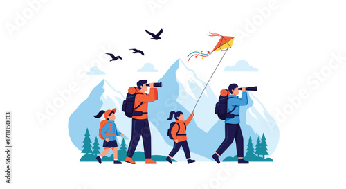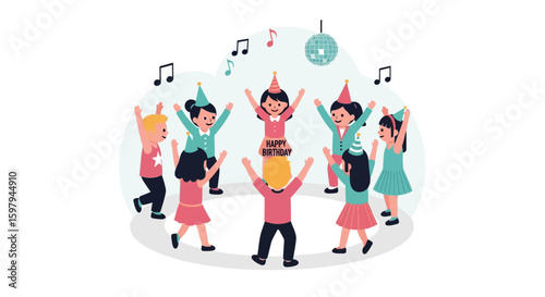 Huge ice cream cart and micro male and female characters eating icecream, vector illustration. Amusement park street trolley with sweet frozen food composition for web banner, website page etc.