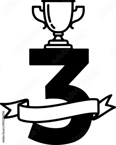 Analysis word ladder with trophy award cup on top. Vector realistic illustration. Business concept for web, poster, banner.
