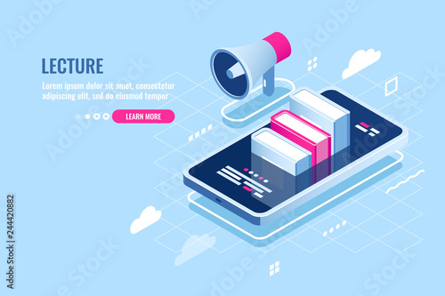 Analytics app concept vector flat isometric illustration. Smartphones with charts on screen.