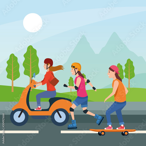Angel keeper saving life of little boy child crossing road on crosswalk vector illustration. Celestial guardian protecting kid from motorcycle riding at high speed