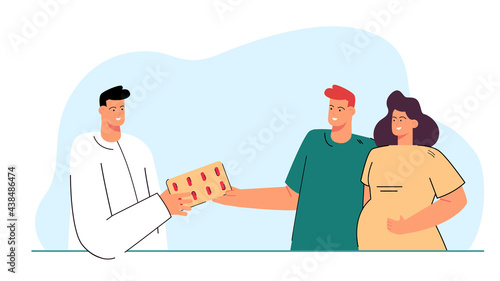 Angry father and mother screaming through megaphones scolding his son, flat vector illustration. Parent and child conflict, relationship.