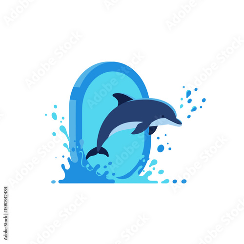 Antarctic South Pole scene with icebergs and penguins silhouettes, vector illustration in paper art style. Antarctica for travel poster, postcard, web banner etc.