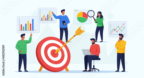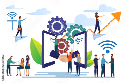 Anti 5g activists with placards protesting against new high speed cell towers, flat vector isometric illustration. Demonstration against 5G mobile technology dangerous to public health, environment.