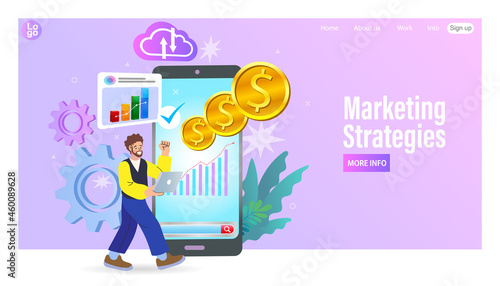 Anti Virus vector website template, web page and landing page design for website and mobile site development. Antivirus software concept with big computer, shield, lock and tiny people catching bugs.
