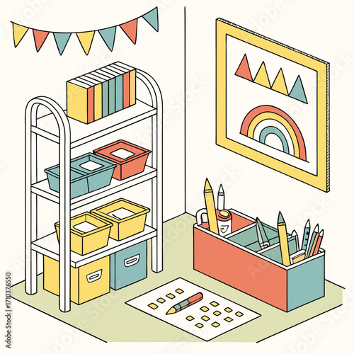 Apartment construction vector flat isometric poster, banner set. Foundation and columns, Floor installation, Walls building, Doors and windows design elements.