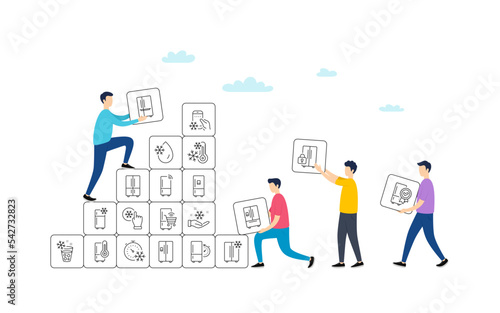 Visa applications with approved and rejected stamps, happy and sad businessmen cartoon characters, vector flat style design illustration.