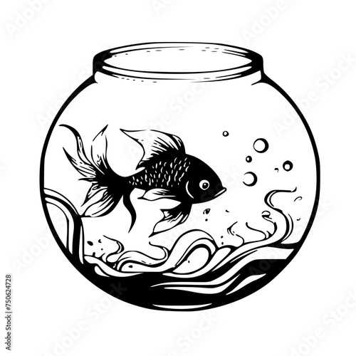 Vector layered paper cut style glass aquarium with underwater plants, exotic fish and stones. Home fishbowl with beautiful marine pet fish in paper art craft style.
