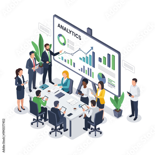 Arab businessman conference, meeting, flat vector isometric illustration. International seminar, workshop or training.